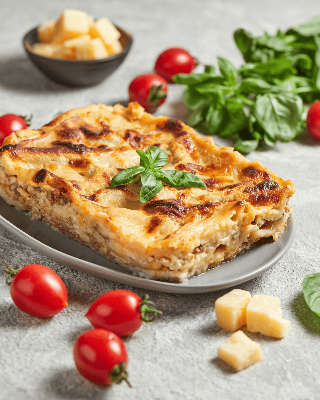 яловичина, свинина, борошно пшеничне екстра, масло вершкове 82%, молоко, томати, сир гауда, сир пармезан, олія оливкова, вода питна, яйце куряче, цибуля ріпчаста, перець білий, перець чорний, сіль кухонна, базилік сухий, мускатний горіх, орегано