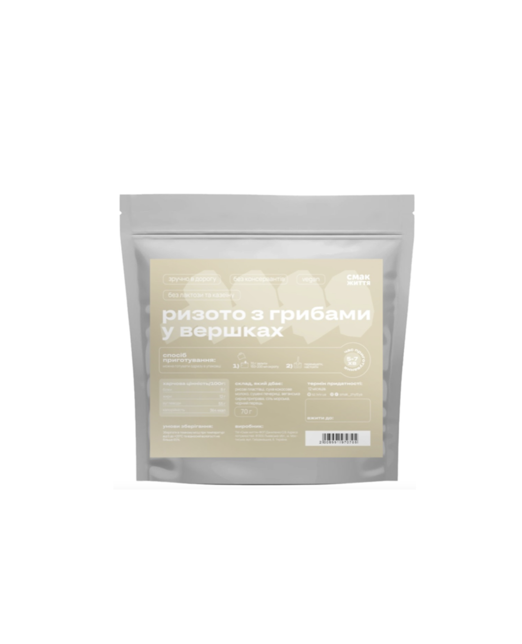 Смак життя каша ризото з грибами у вершках 70 г