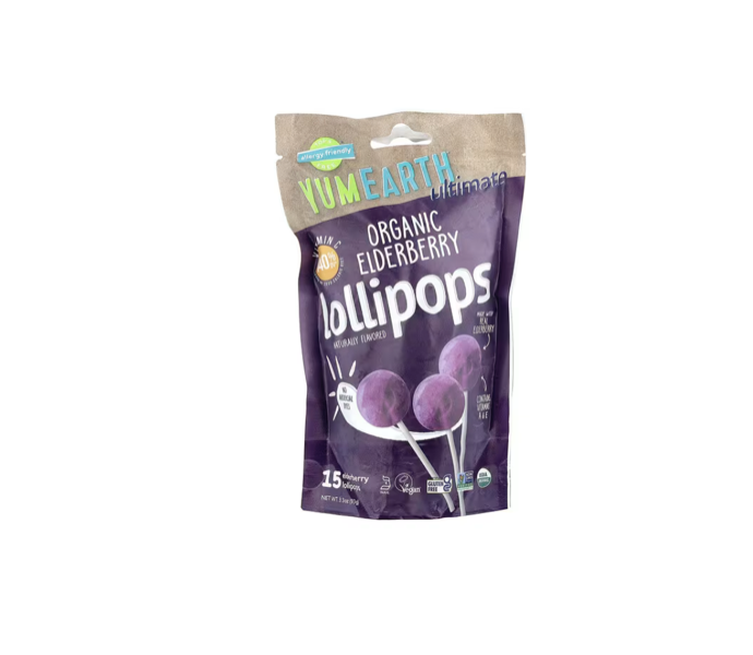 YumEarth органічні льодяники на паличці з вітаміном С зі смаком бузини 93 г